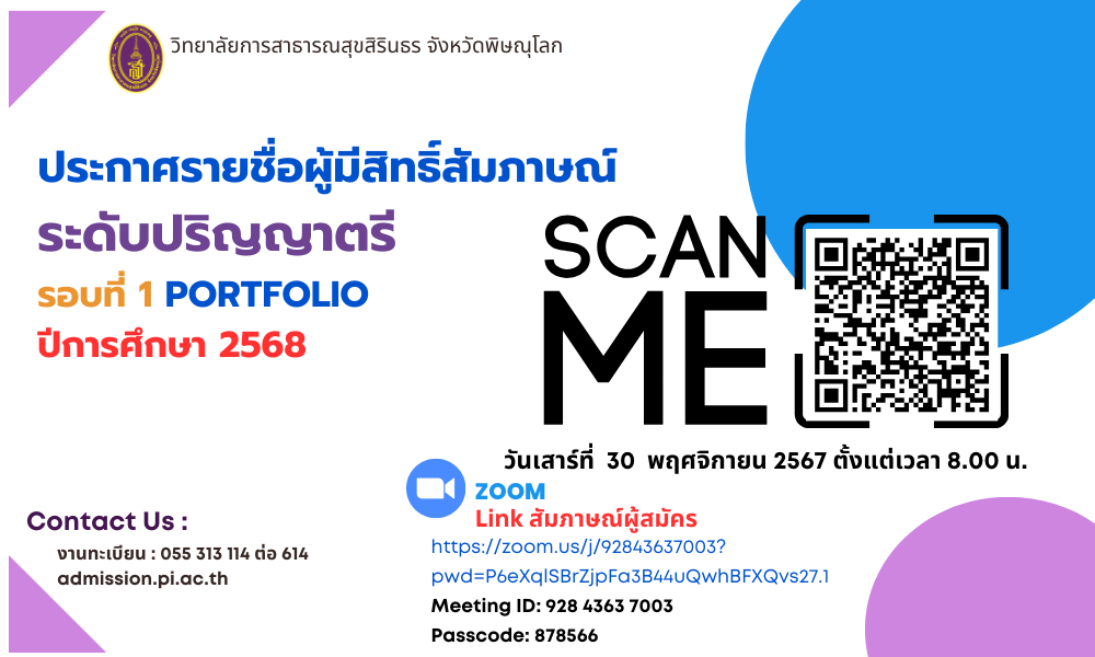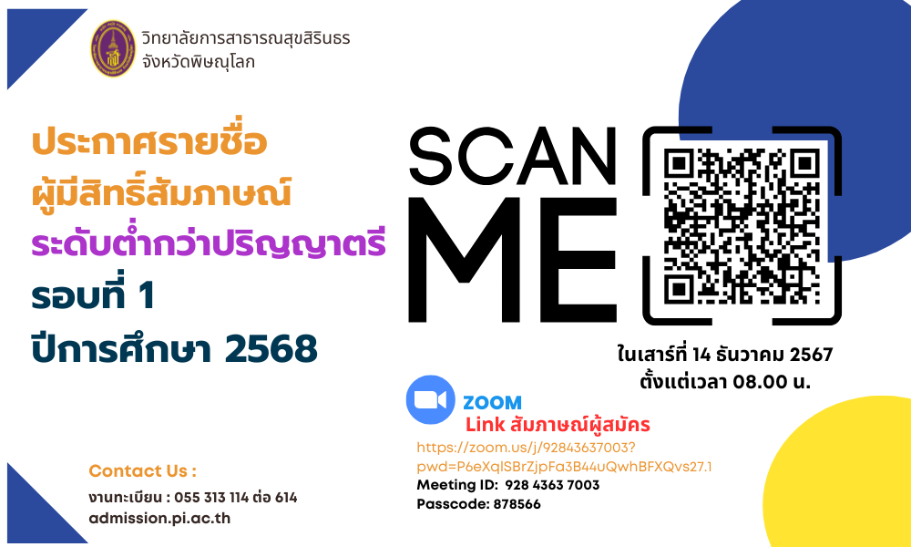 ข่าวการศึกษา ประกาศรายชื่อผู้ผ่านการคัดเลือก (เฉพาะตัวจริง) รอบที่ 1 Portfolio รอบที่ 1 ระดับปริญญาตรี ปีการศึกษา 2568 อ่านต่อ » 17 ธันวาคม 2024