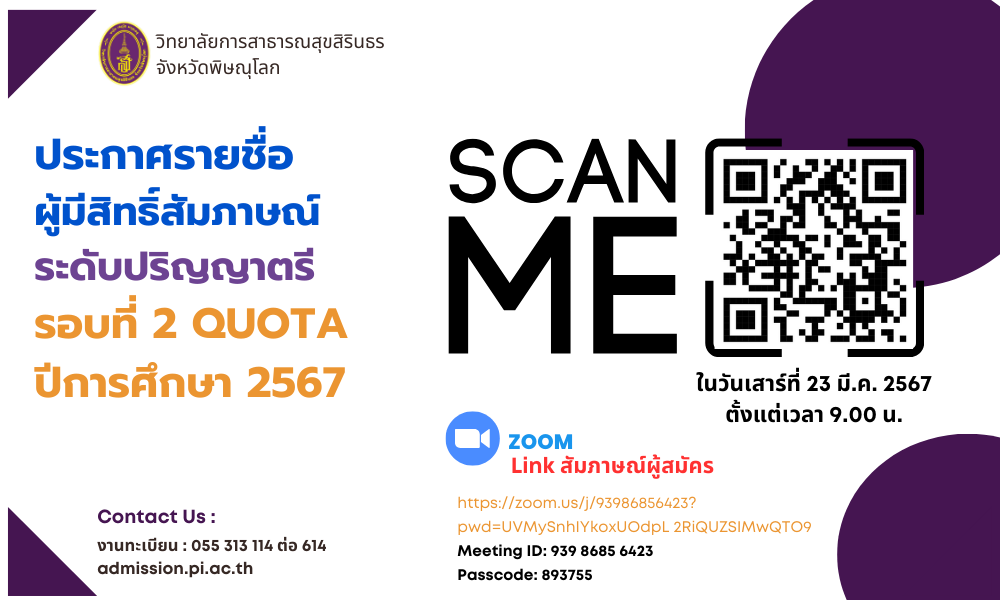 ข่าวการศึกษา ประกาศรายชื่อ ผู้มีสิทธิ์สัมภาษณ์ ระดับปริญญาตรี รอบที่ 2 Quota ปีการศึกษา 2567 อ่านต่อ » 19 มีนาคม 2024