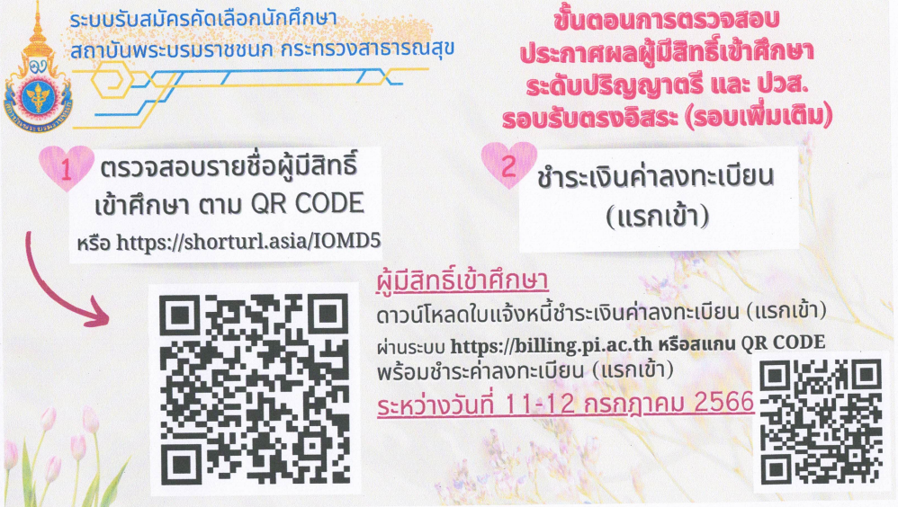 ประกาศรายชื่อผู้มีสิทธิ์เข้าศึกษา และขั้นตอนการตรวจสอบประกาศผลผู้มีสิทธิ์เข้าศึกษา ระดับปริญญาตรี รอบรับตรงอิสระ (รอบเพิ่มเติม)
