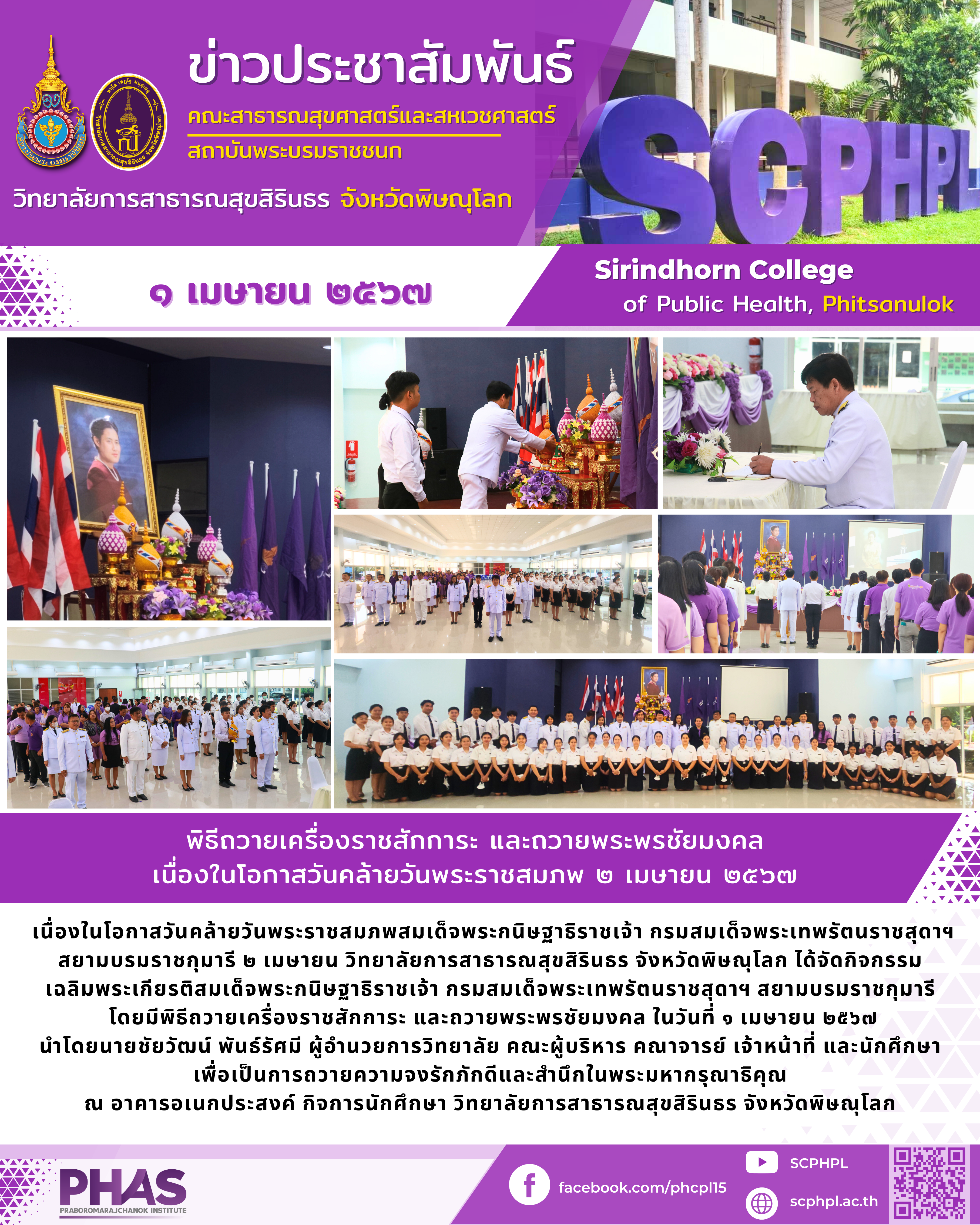 พิธีถวายเครื่องราชสักการะ และถวายพระพรชัยมงคล เนื่องในโอกาสวันคล้ายวันพระราชสมภพ ๒ เมษายน ๒๕๖๗