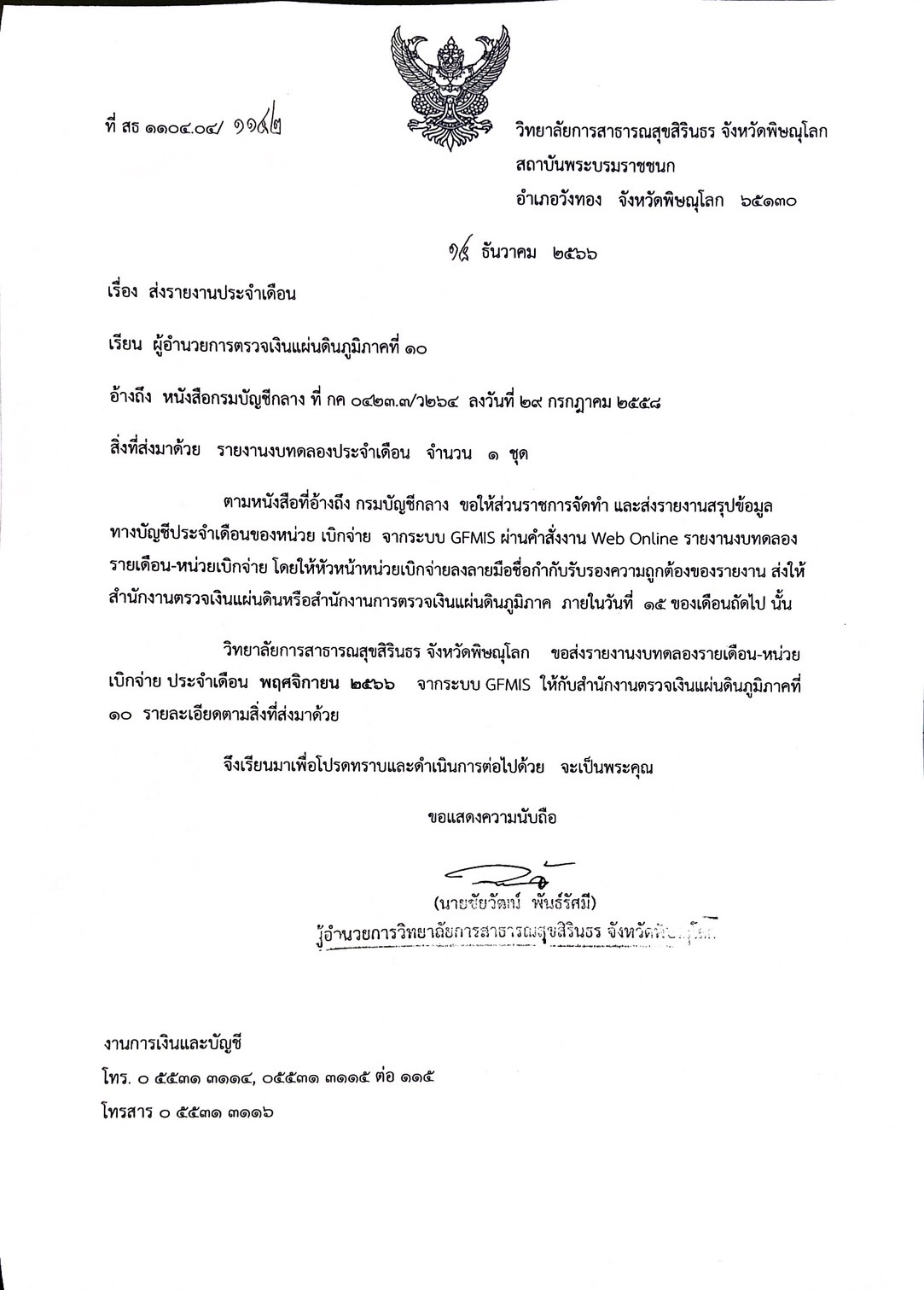 รายงานการเงิน งบทดลองเดือน พฤศจิกายน 2566 (ปีงบประมาณ 2567)