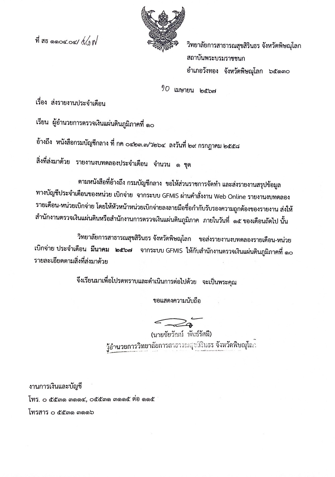 รายงานการเงิน งบทดลองเดือน มีนาคม 2567 (ปีงบประมาณ 2567)