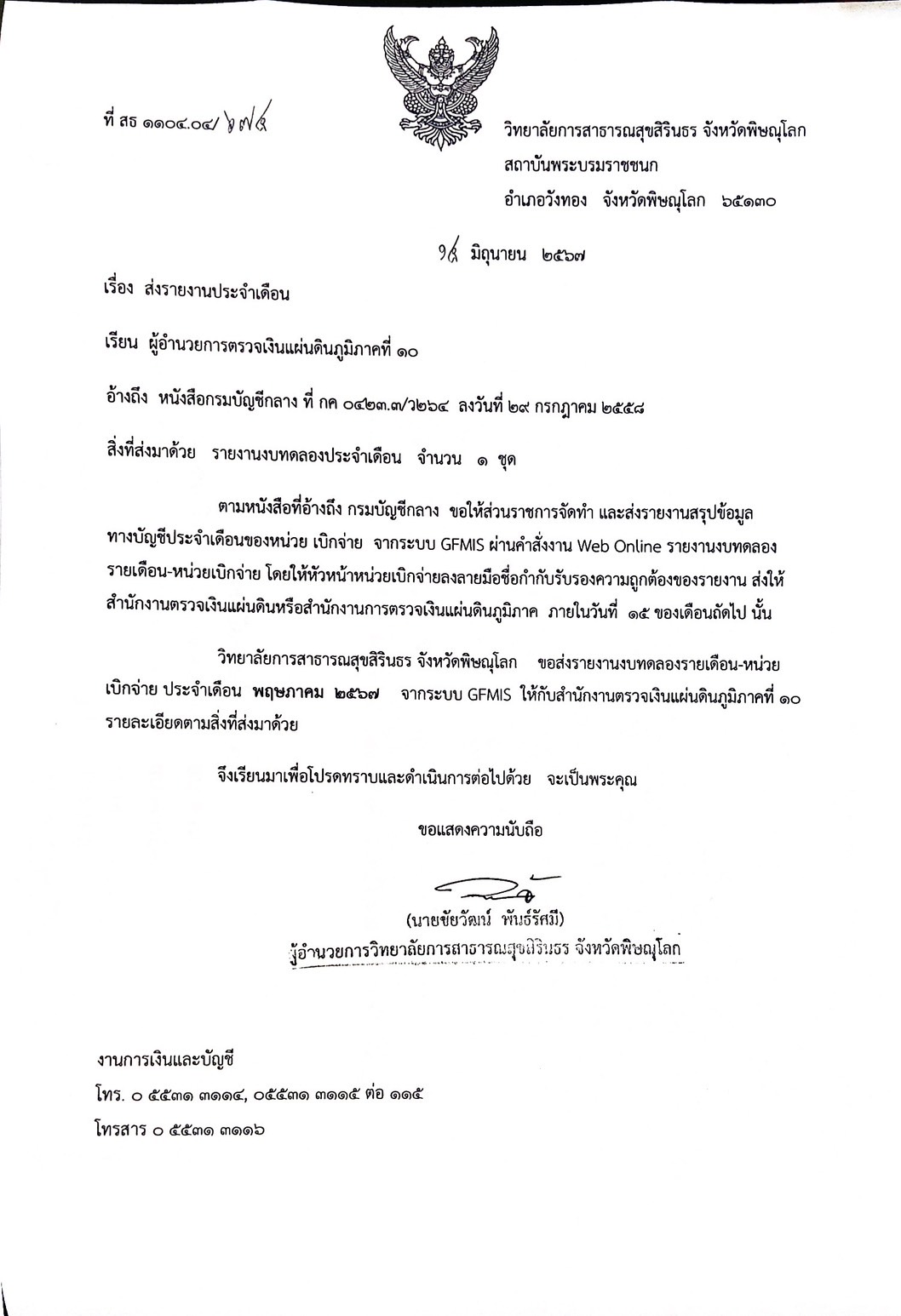 รายงานการเงิน งบทดลองเดือน พฤษภาคม 2567 (ปีงบประมาณ 2567)