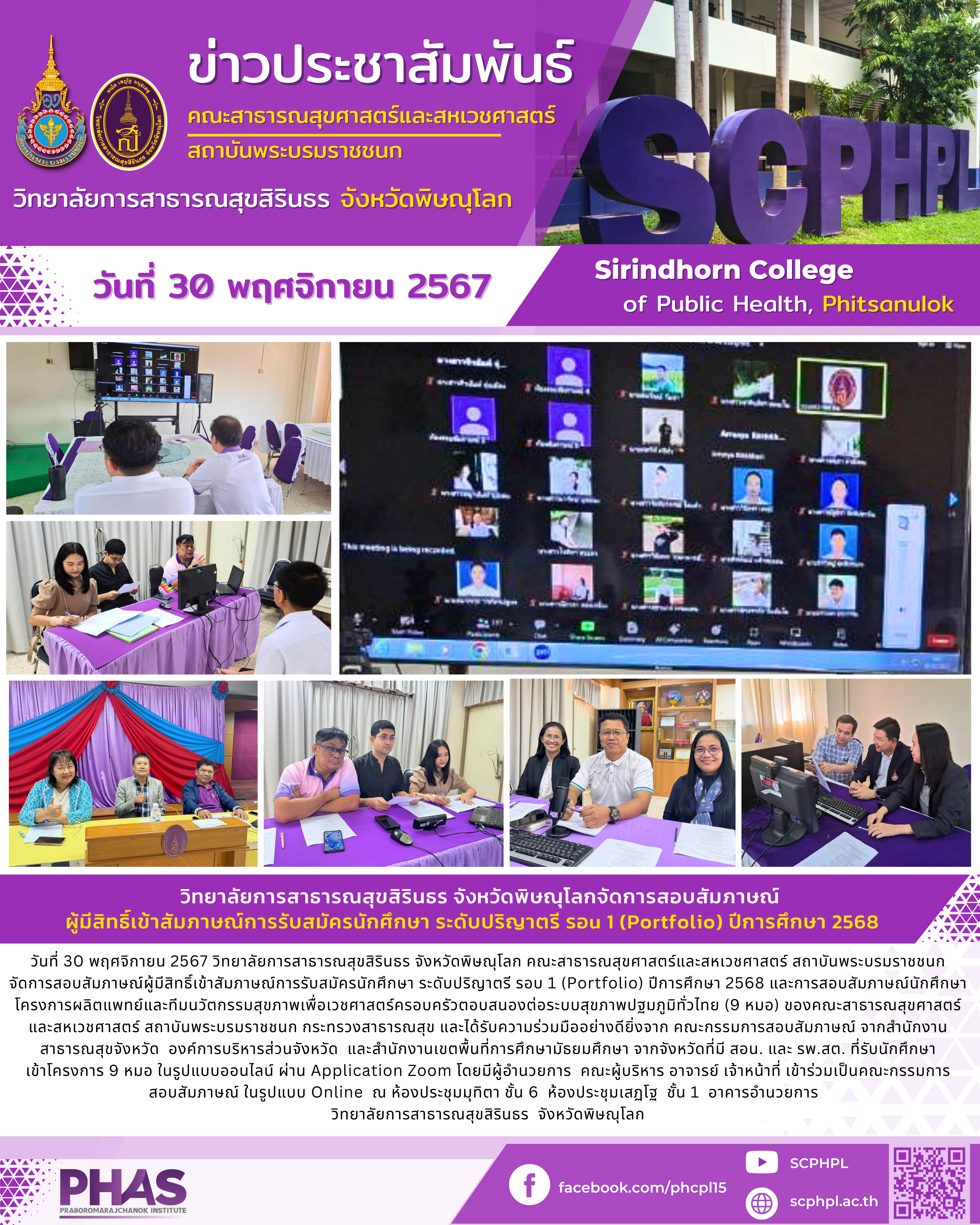 วิทยาลัยการสาธารณสุขสิรินธร จังหวัดพิษณุโลกจัดการสอบสัมภาษณ์ ผู้มีสิทธิ์เข้าสัมภาษณ์การรับสมัครนักศึกษา ระดับปริญาตรี รอu 1 (Portfolio) ปีการศึกษา 2568