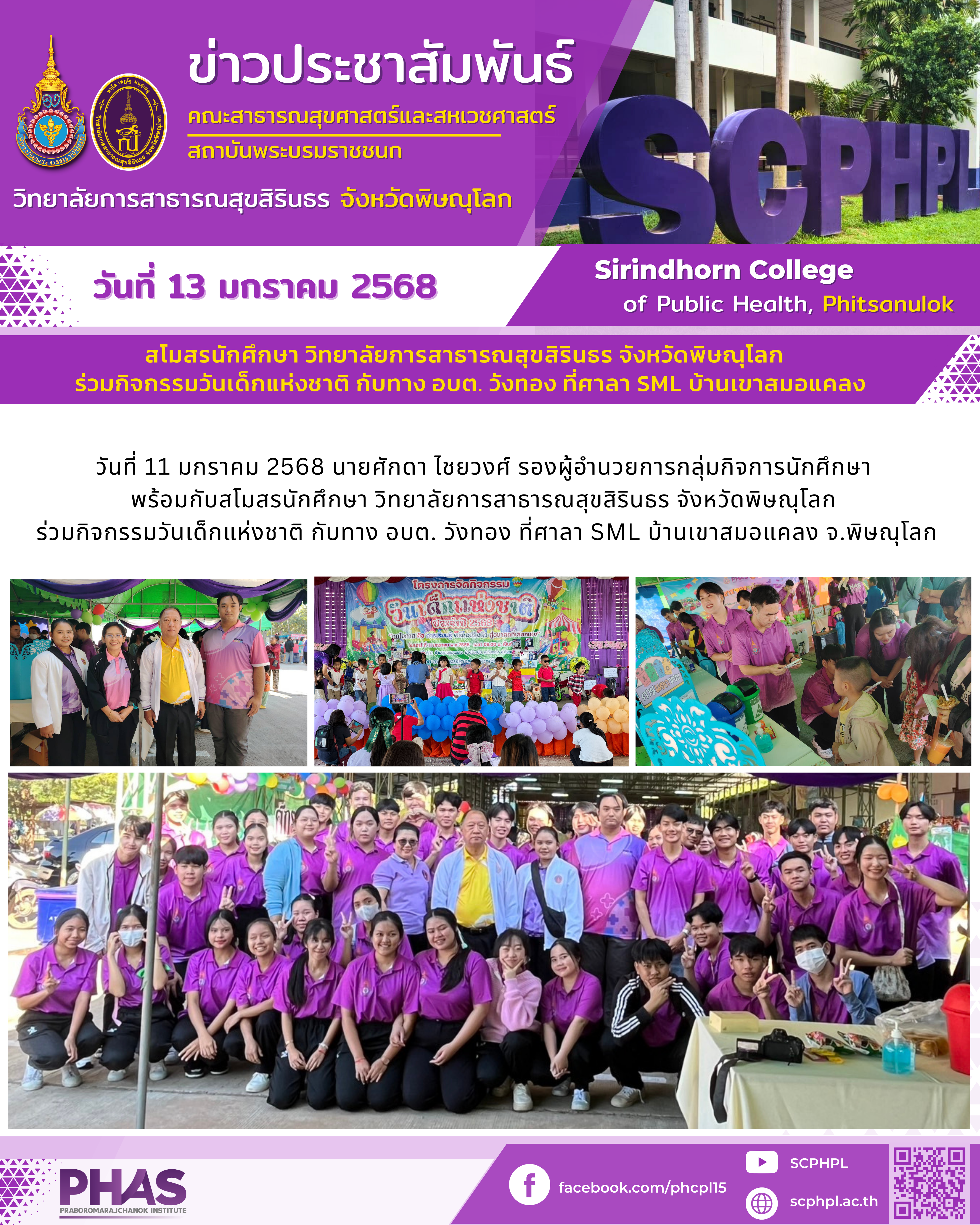 สโมสรนักศึกษา วิทยาลัยการสาธารณสุข สิรินธร จังหวัดพิษณุโลก ร่วมกิจกรรมวันเด็กแห่งชาติ กับทาง อบต. วังทอง ที่ศาลา SML บ้านเขาสมอแคลง