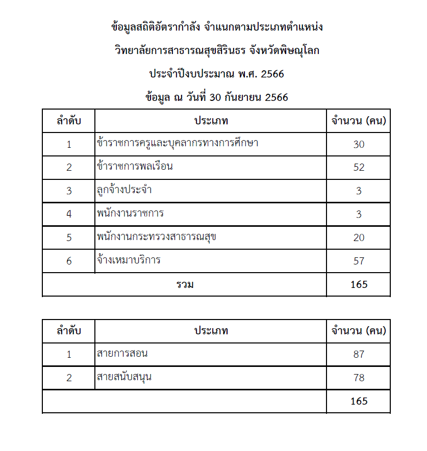 ข้อมูลสถิติอัตรากำลัง จำแนกตามประเภทตำแหน่ง