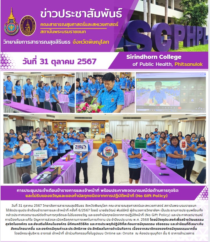 O21. ประกาศ เจตนารมณ์และ การสร้าง วัฒนธรรม นโยบาย NO Gift Policy จาก การปฏิบัติหน้าที่